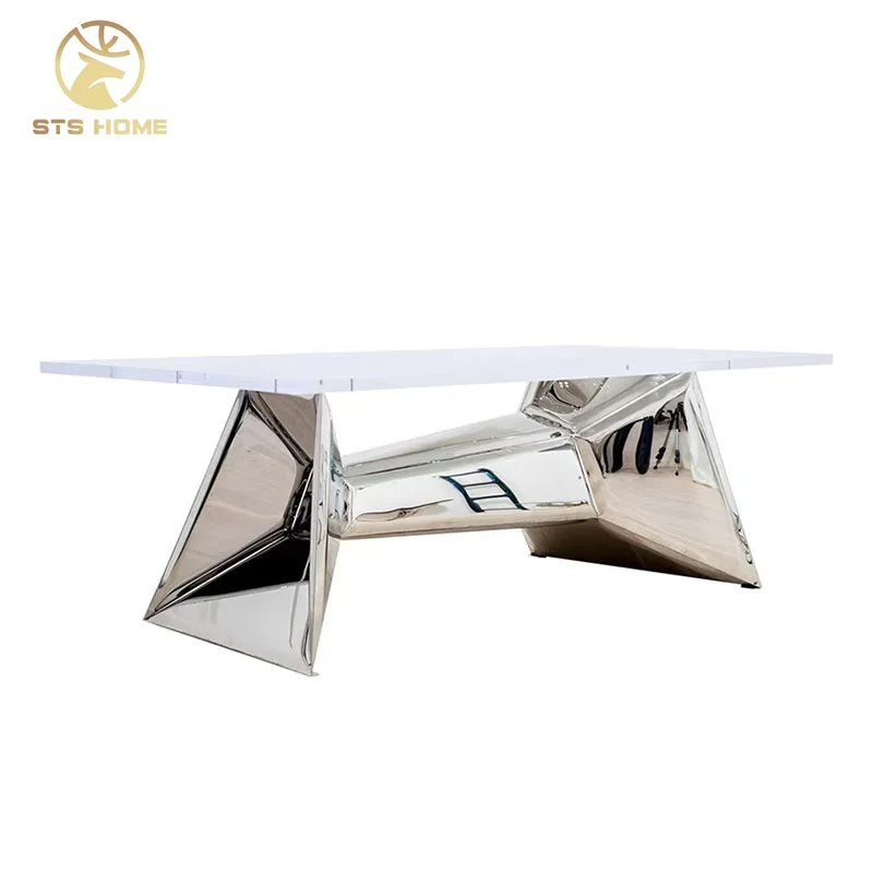 Современный Креативный дизайн обеденный стол 10 мест из нержавеющей стали на основе акриловый топ офисный Рабочий