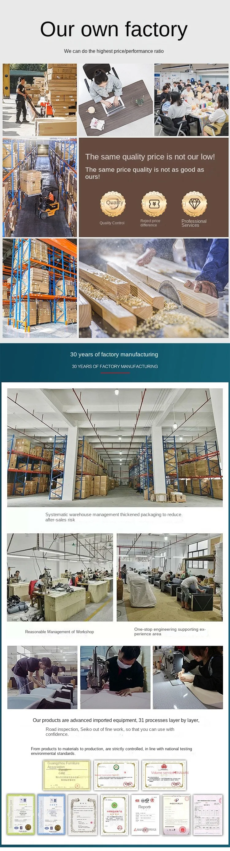 Foshan-based Chinese furniture maker. Specializes in high-end custom & full-house OEM. Large-scale, integrating production/sales. 20K+ sq.m., 100+ staff. Quality & capacity guaranteed. Order now!