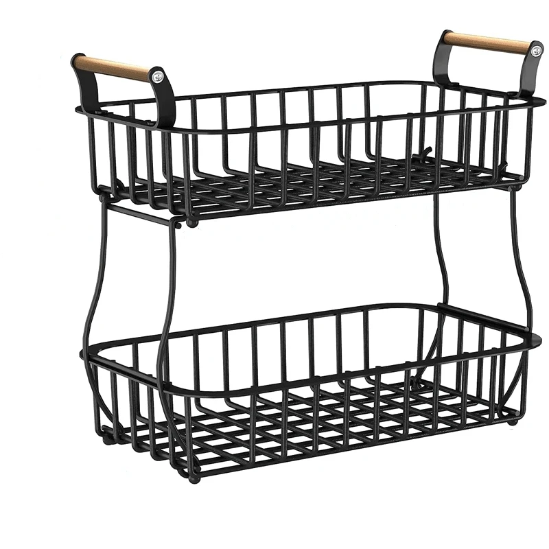 Кованая деревянная кухонная корзина для фруктов настольная многоярусная стеллаж закусок и приправ хранения овощей