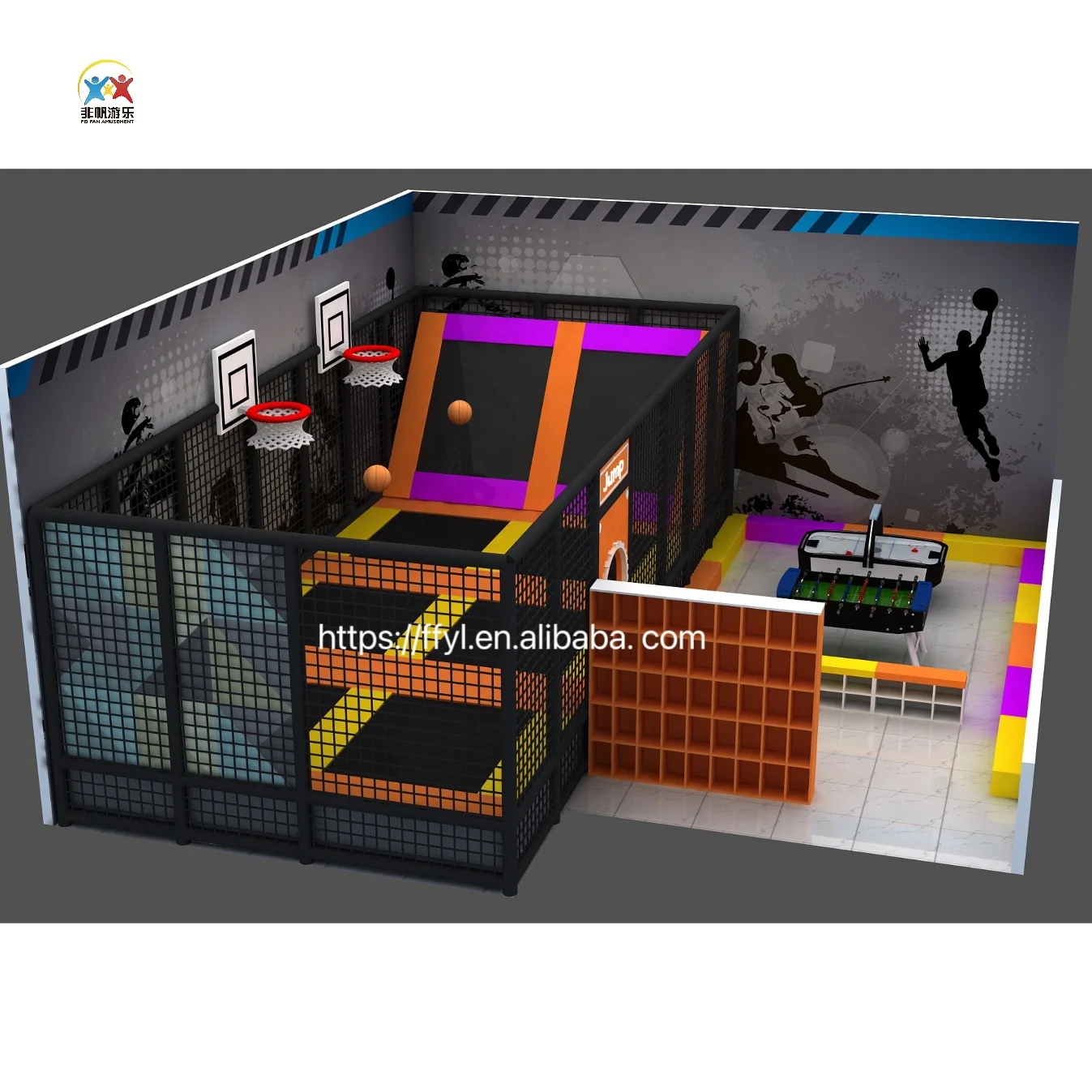 Game Options | Free jump, dodgeball, football, handball, basketball race, slum dunk, professional trampoline, foam pit, air bag, cageball, Ninja course etc. | |||