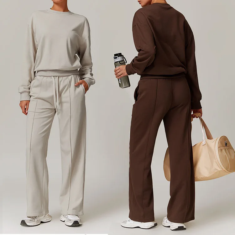 Новинка 2025 женская спортивная одежда свитер для спортзала штаны бега толстовка с высокой талией йоги Топ длинным рукавом костюм из хлопка индивидуальным логотипом