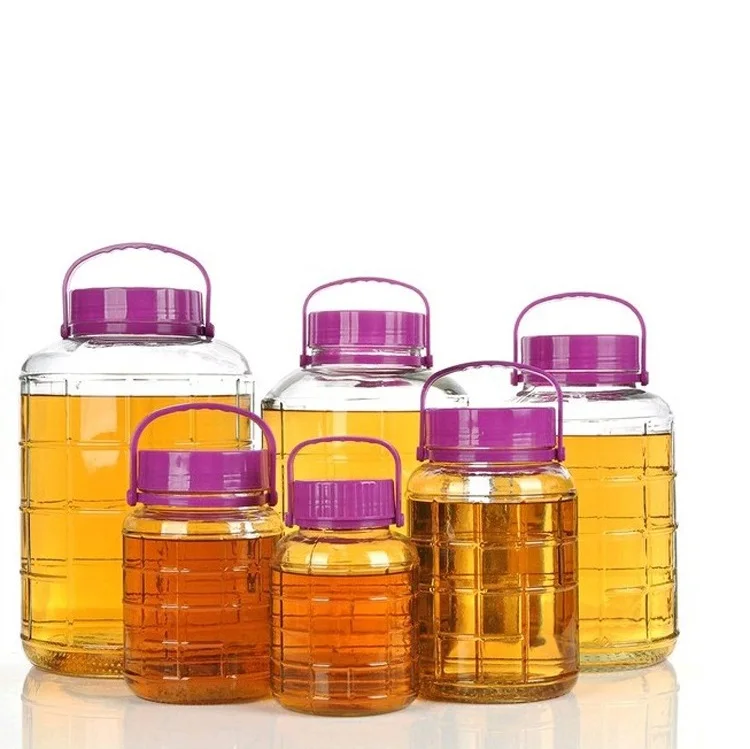 1L 2L 3L 5L 8L 10L 15L 20L стеклянный ферментационный домашний винный маринованный кувшин с красной и фиолетовой ручкой 178,02 ₽ - 415,37 ₽