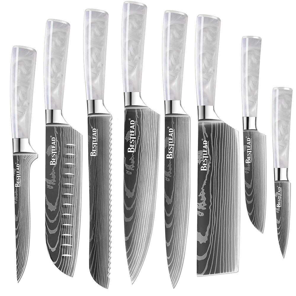 Недорогой кухонный нож 3cr13 из нержавеющей стали с полипропиленовой ручкой лазерный дамасский узор для шеф-повара