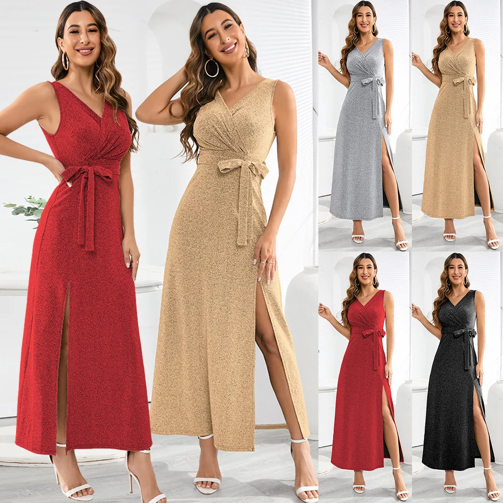 Женское облегающее трикотажное платье без рукавов с V-образным вырезом