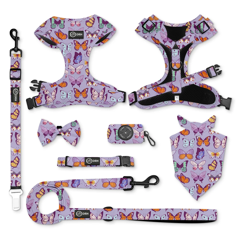 Оптовая продажа жгут для домашних животных высокое качество сильная ручка водонепроницаемый светоотражающий Регулируемый ошейник собак набор