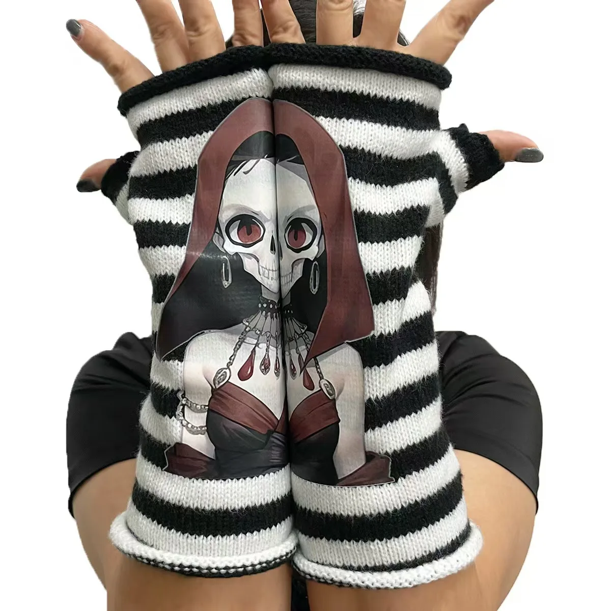 Женские трикотажные перчатки с принтом в виде черепа