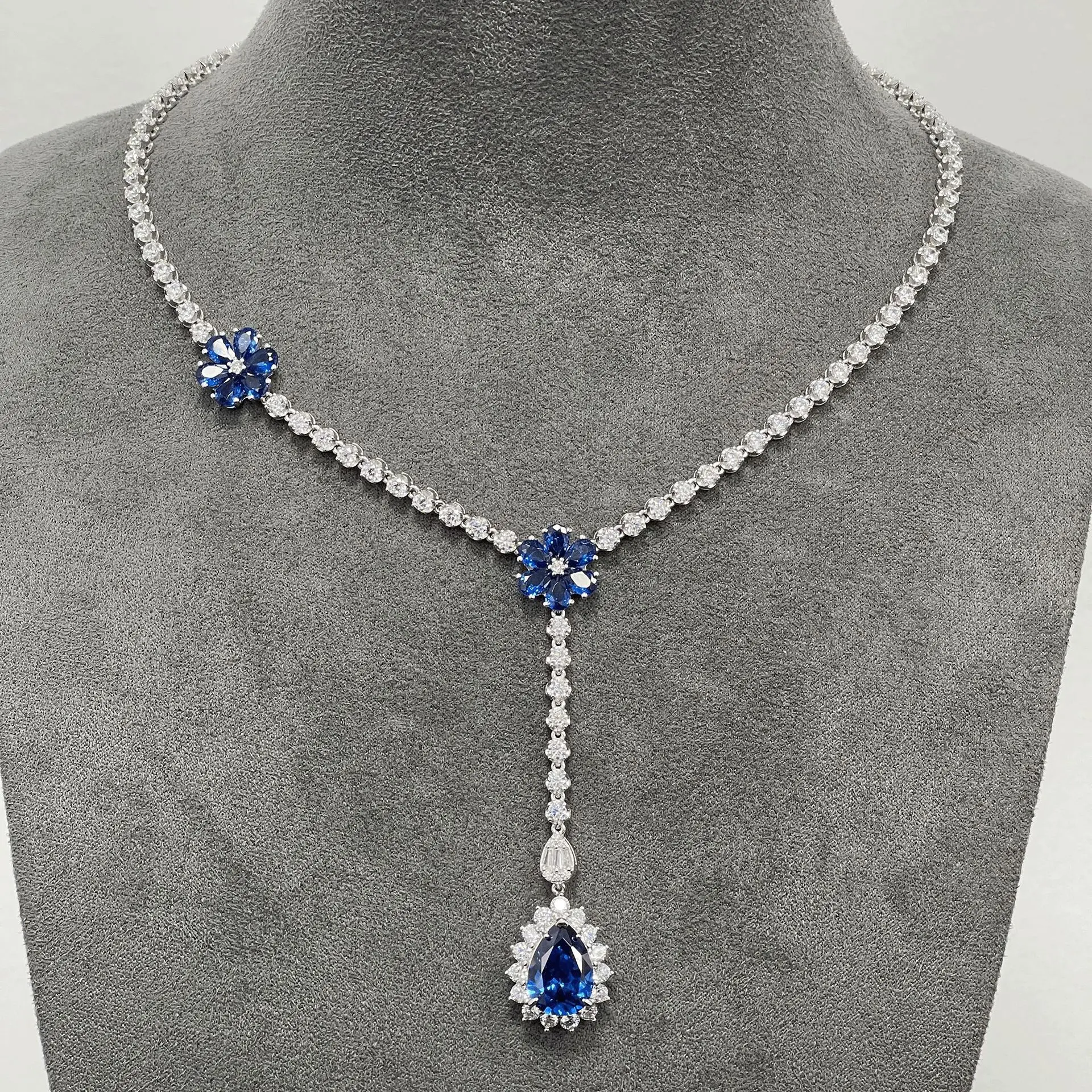 Роскошный кулон в форме груши королевский синий сапфир ожерелье 925 стерлингового серебра теннисная цепочка свадебные украшения