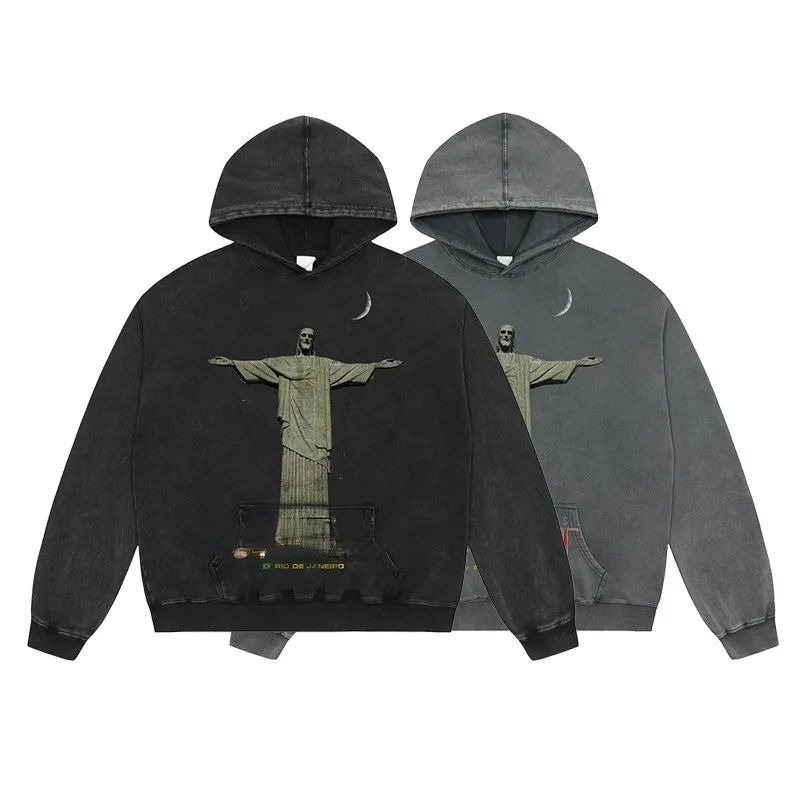 Оптовая продажа Высококачественная джинсовая Толстовка в супертяжелом весе 420 г/кв. М хлопковая толстовка с цветочным принтом большого размера