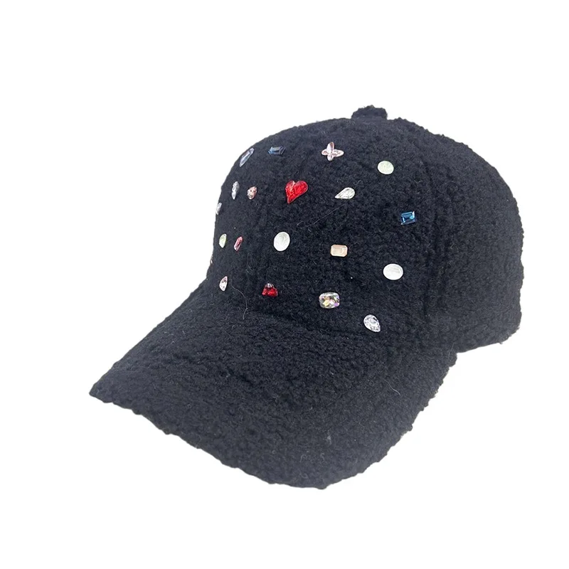 Новая осенняя и зимняя Корейская женская модная индивидуальная теплая Кепка с уткой цветные Бейсбольные Кепки из овечьей шерсти со стразами