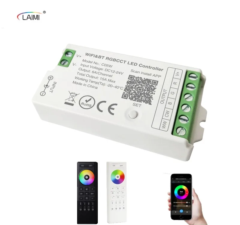 C05W LAIMI DC12-24V 15A RGBCCT Tuya умный Радиочастотный пульт/приложение/Голосовое управление светодиодный контроллер wifi smart controller для волшебного дома
