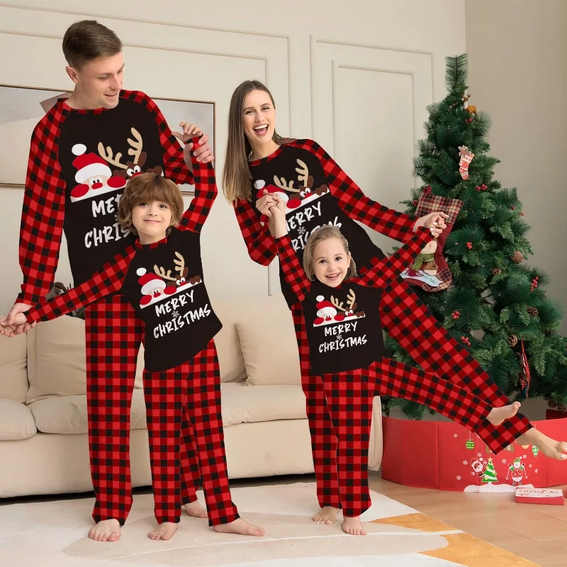 Оптовая продажа Лидер продаж черная и красная клетчатая удобная домашняя одежда для родителей детей