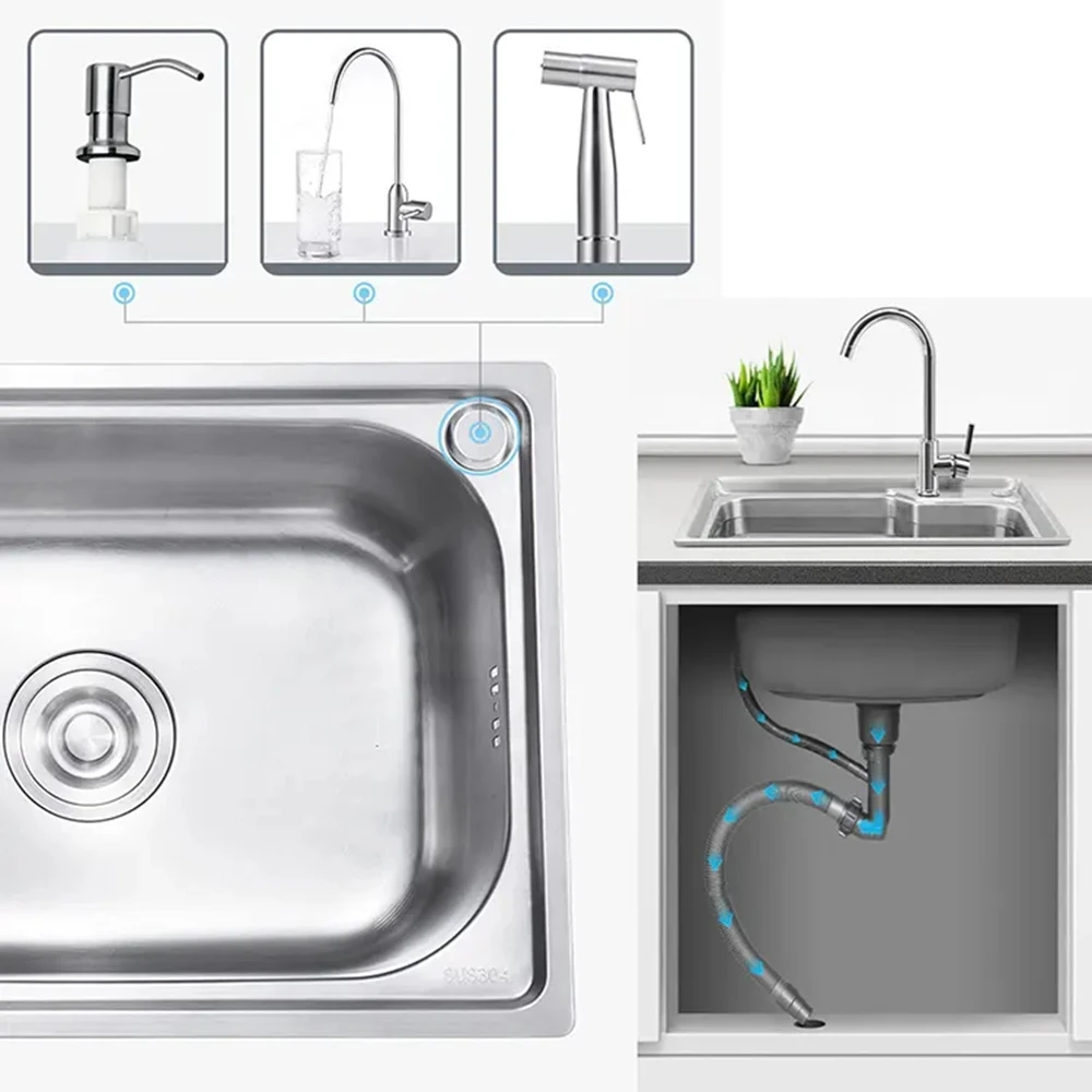 RUIHE-SX4 прямоугольная 304 чаша подмонтированный фартук из нержавеющей стали ручной работы умный водопад многофункциональная кухонная раковина 10 746,94-15 271,96 ₽