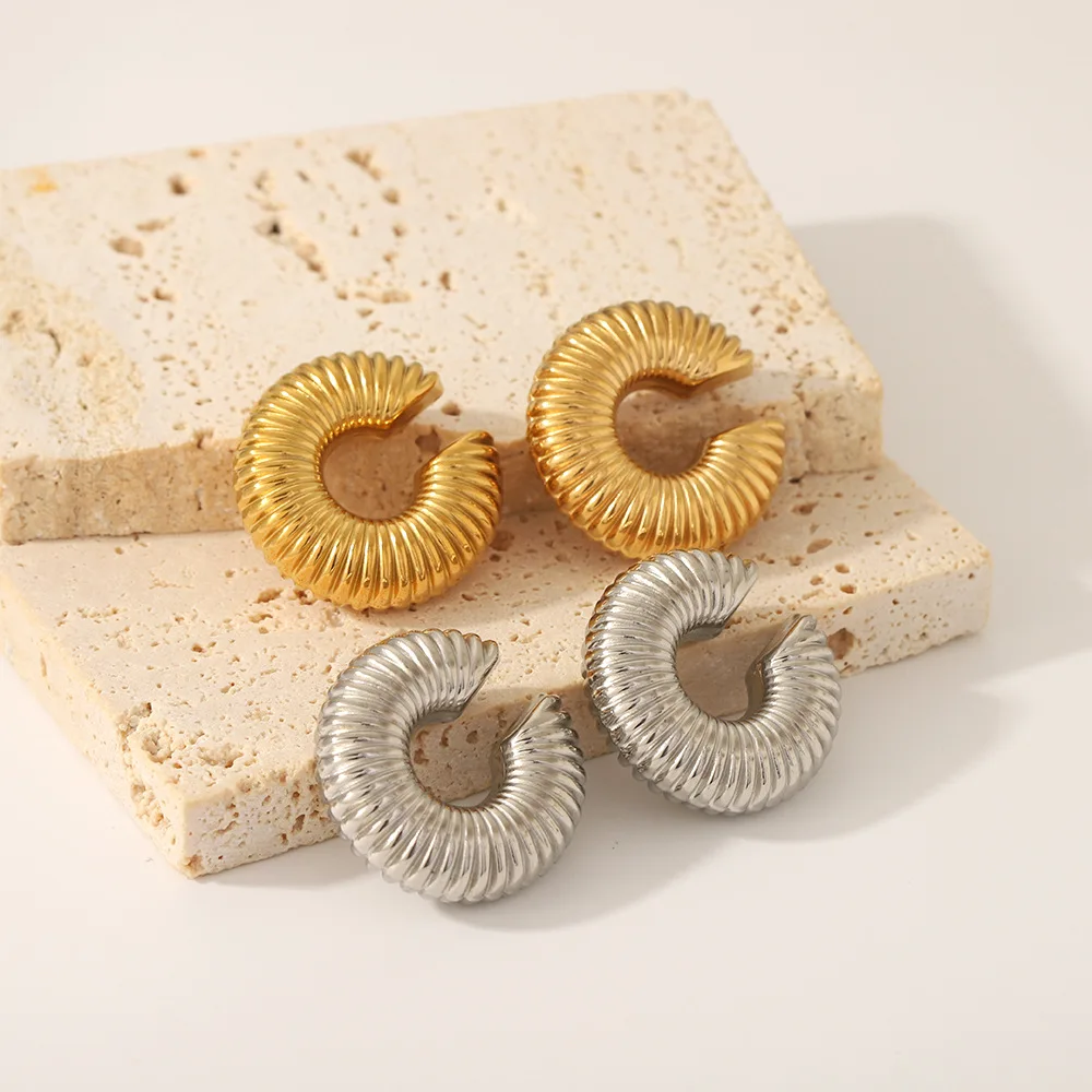 Лидер продаж 18 карат позолоченные большие размеры массивные без прокалывания зажимы для ушей серьги толстые витые из нержавеющей стали
