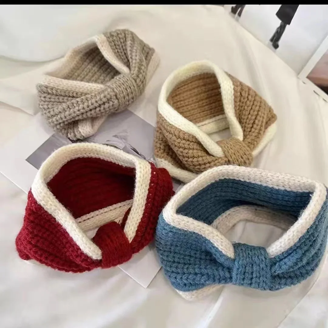 Новинка винтажная трикотажная шерстяная лента для волос с широкими полями эластичная атласная спортивная повязка на голову женщин осень зима черный белый
