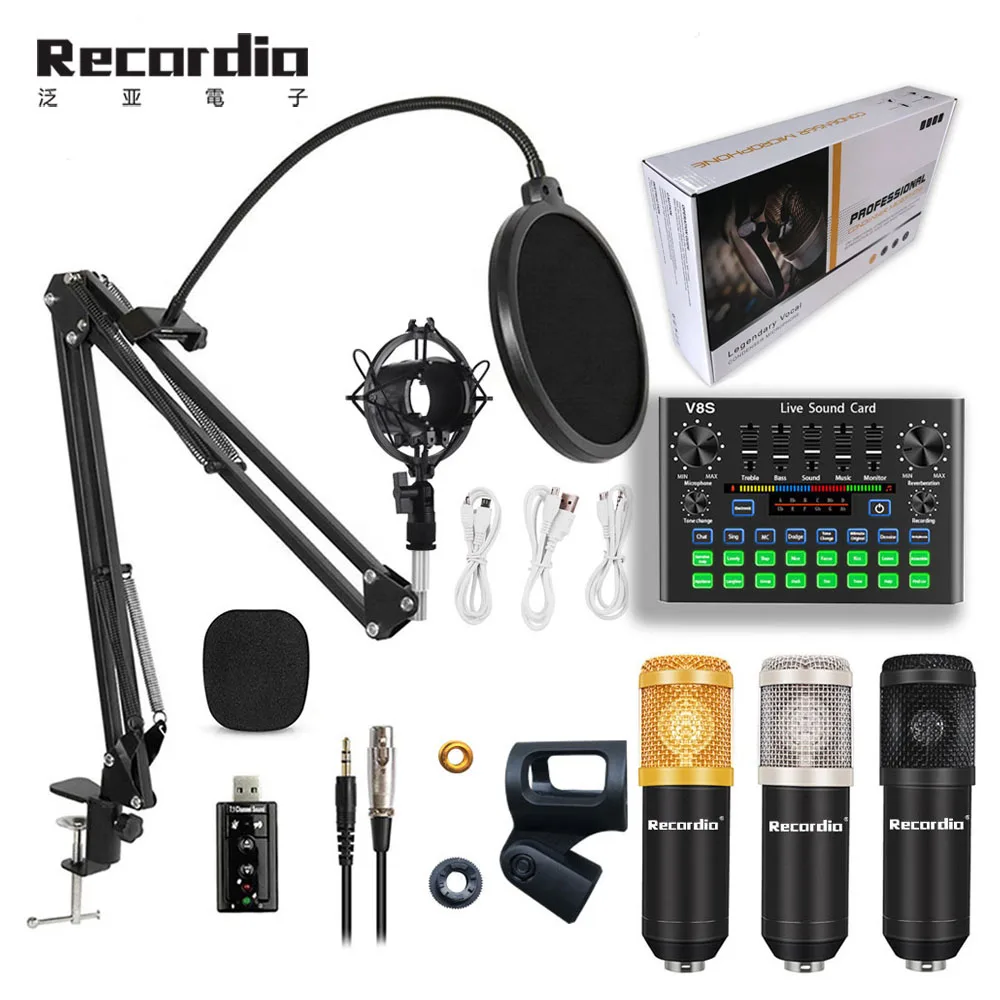 Bm 800 микрофон студия звукозаписи наборы bm-800 конденсер для компьютера караоке mic звуковая карта