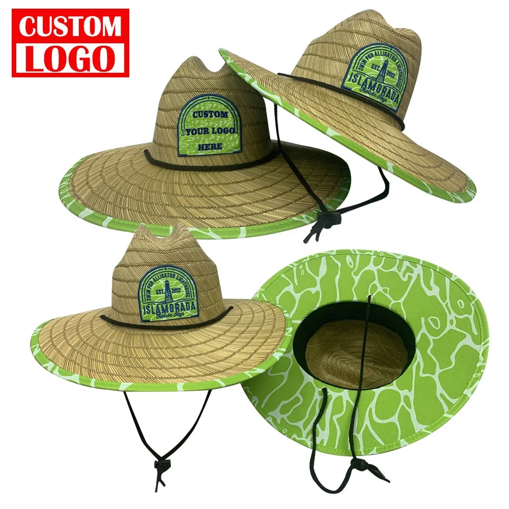 Модные ковбойские натуральные соломенные шляпы Lifeguard с вышитым логотипом печатным рисунком солнцезащитные рыболовные широкополадные пляжные на