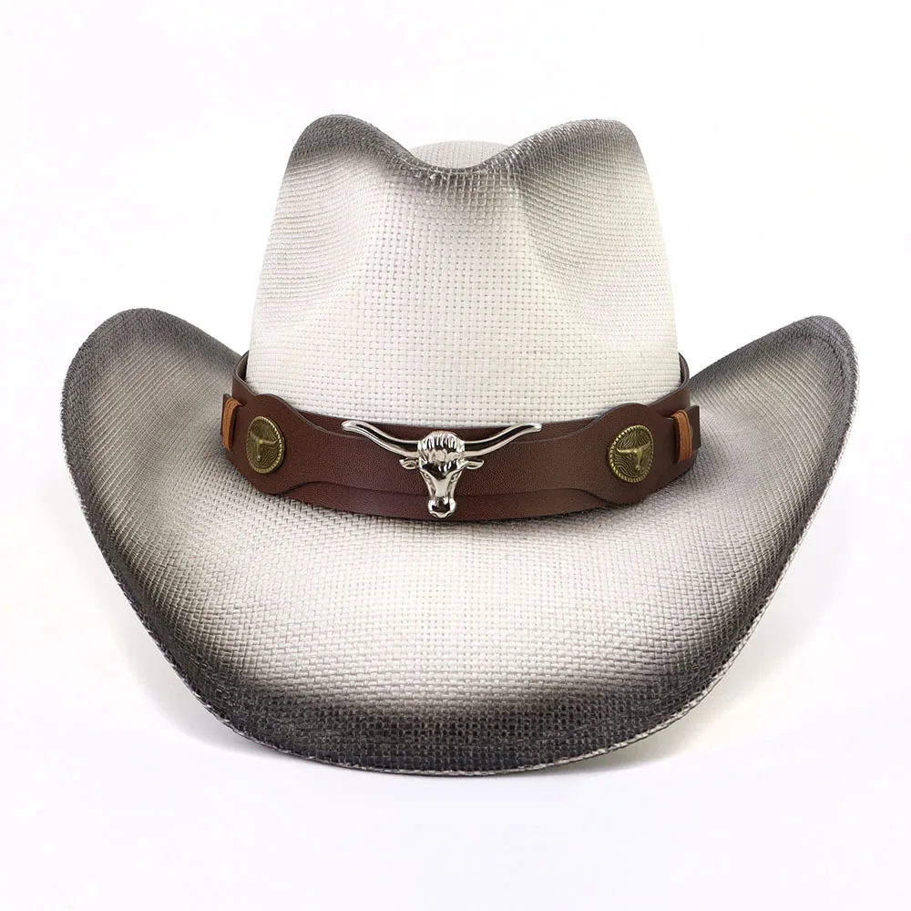 Высококачественная соломенная ковбойская шляпа с воловьей головкой