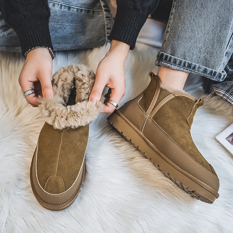 Хлопчатобумажная обувь зимняя для мужчин замша водонепроницаемая кожа слипоны Толстая Флисовая теплая мужская 3 073,71 ₽ - 3 548,41 ₽