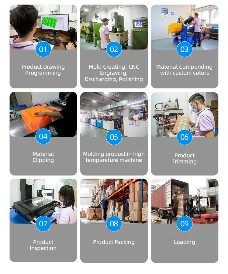 We are a professional manufacturer of silicone products, integrating design, development, manufacture, sale & service. We specialize in manufacturing silicone baby feeding sets, household articles, sport goods, silicone kitchenware and silicone beauty care items, etc,and have applied for and obtained the product appearance patents and practical patents for silicone belts and cake baking molds.We possess 20 groups of silicone rubber products’ moulding machines, and our own tooling department with 3sets of CNC and 3 sets of EDM machine, which can support us to customize the ODM and OEM designs for customers.