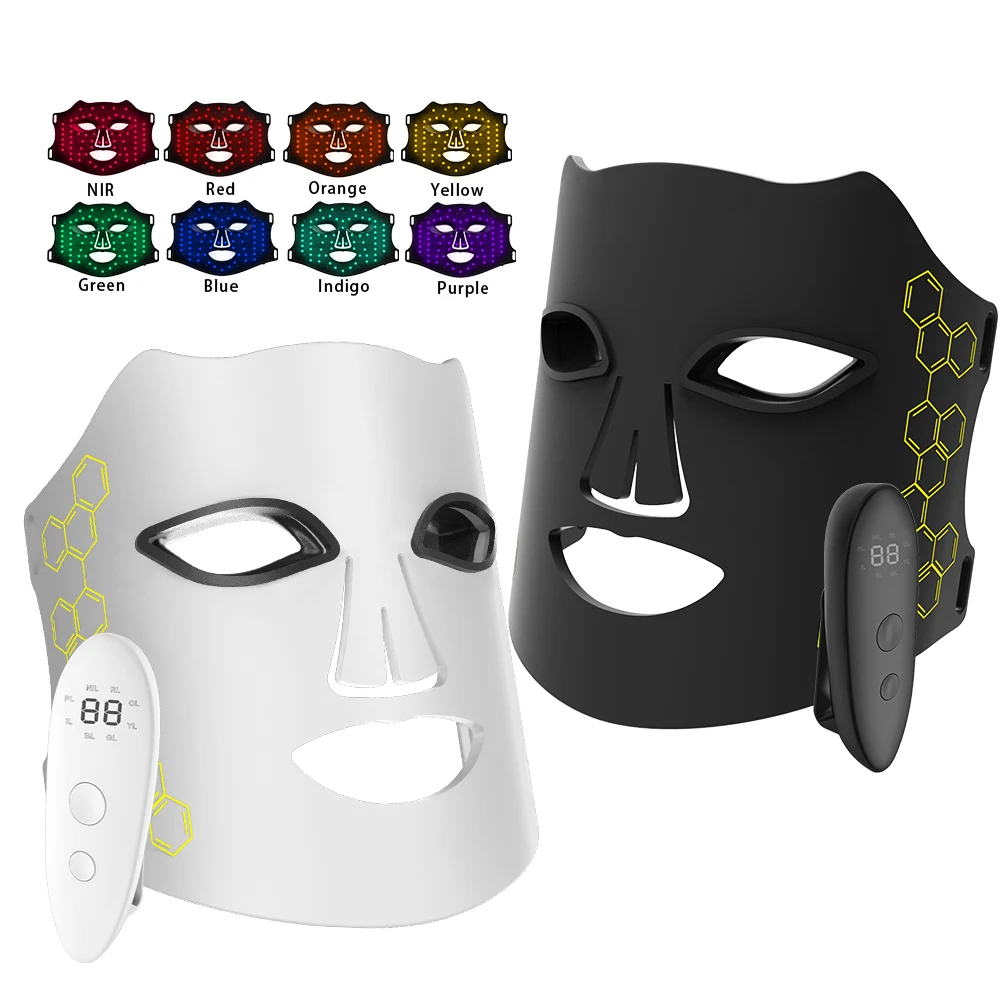 2024 новая портативная беспроводная 8 видов цветов красная инфракрасная светодиодная фотонная лечебная маска для лица домашнего использования Косметическая силиконовая