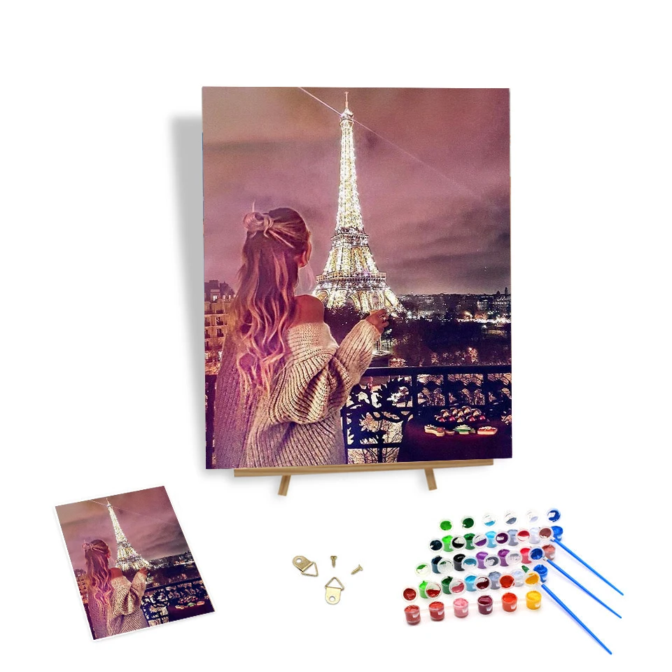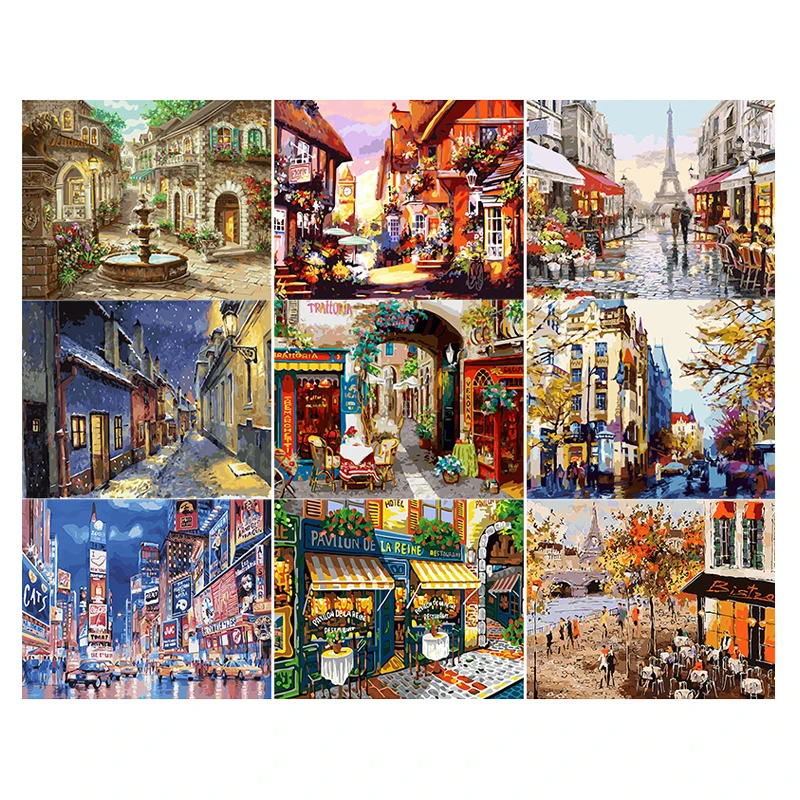 Оптовая продажа на заказ Европейский пейзаж ручная роспись по номерам картины и настенный холст домашний декор