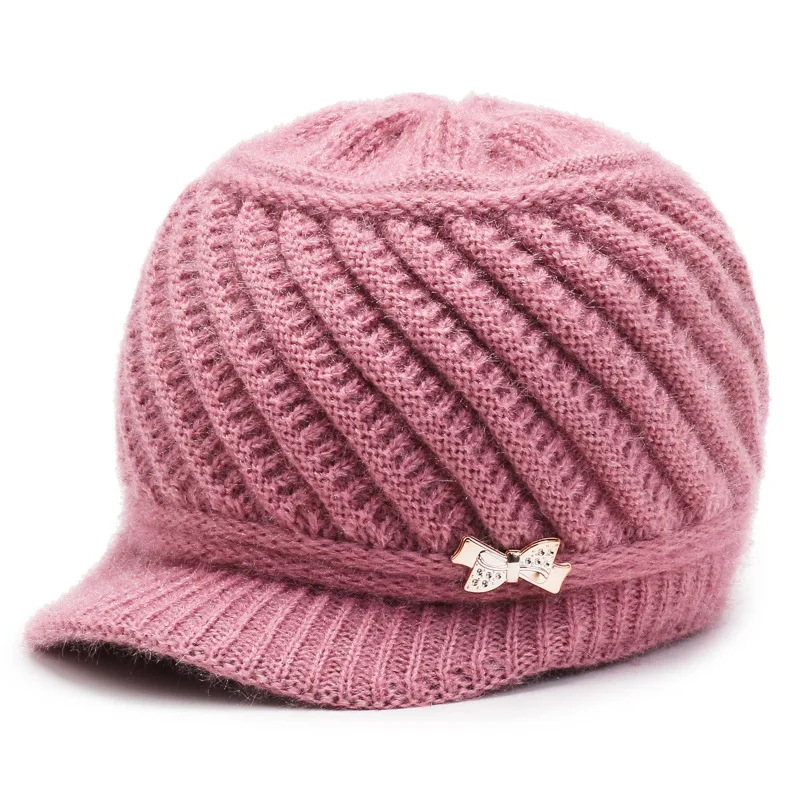 Вязаная шапка с козырьком Шерстяная Лыжная Классическая зимняя теплая