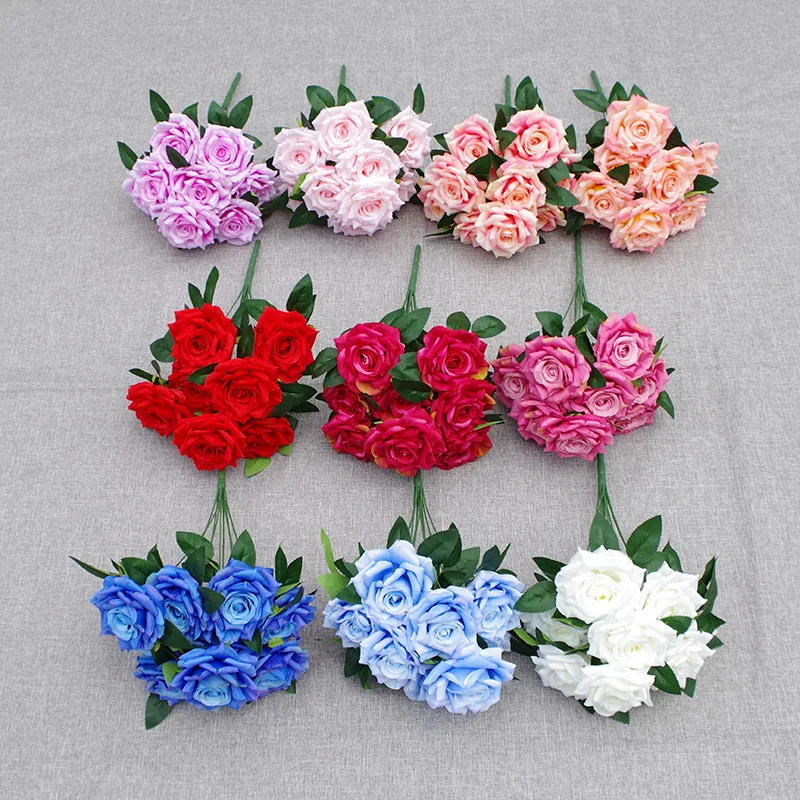 9 голов недорогой искусственный цветок куст большая открытая Роза шелк 10 букет роз для свадьбы 179,96 ₽ - 198,73 ₽