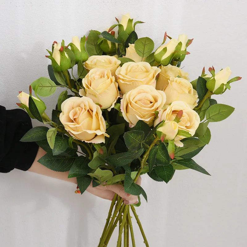 Высокое качество Шампанское смешанные цвета Искусственные цветы Шелковая Роза 7 головок Большой букет цветов для свадебного украшения домашнего декора 81,70 ₽ - 99,37 ₽