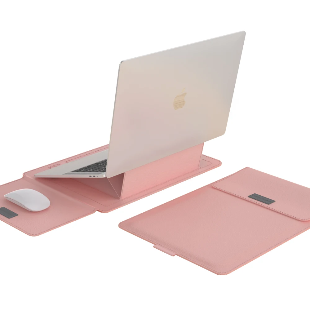 2025 Лидер продаж новая кожаная сумка для ноутбука Macbook с портативным ковриком мыши и стойкой подставкой использования на ходу