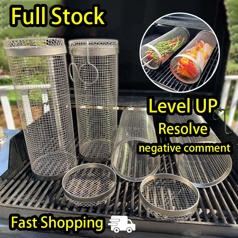 Цилиндрическая корзина для гриля круглая металлическая сетка из нержавеющей стали барбекю жарки мяса