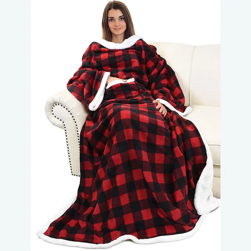 Оптовая Продажа с фабрики высокое качество новый дизайн молока и хлеба уютная флисовая носимая толстовка капюшоном одеяло гигантским карманом