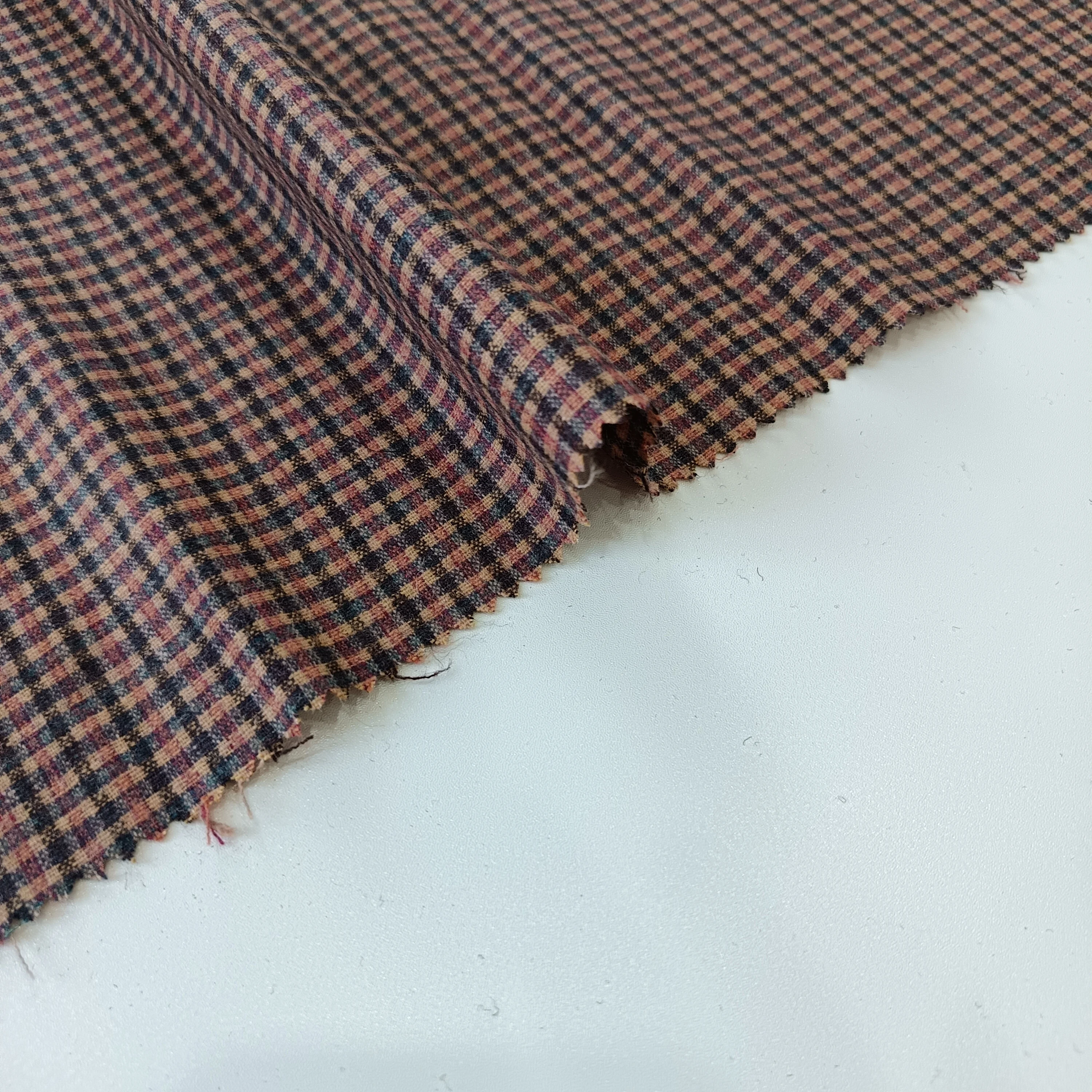 Модная клетчатая коричневая шерстяная камвольная полиэфирная смешанная ткань для костюмов