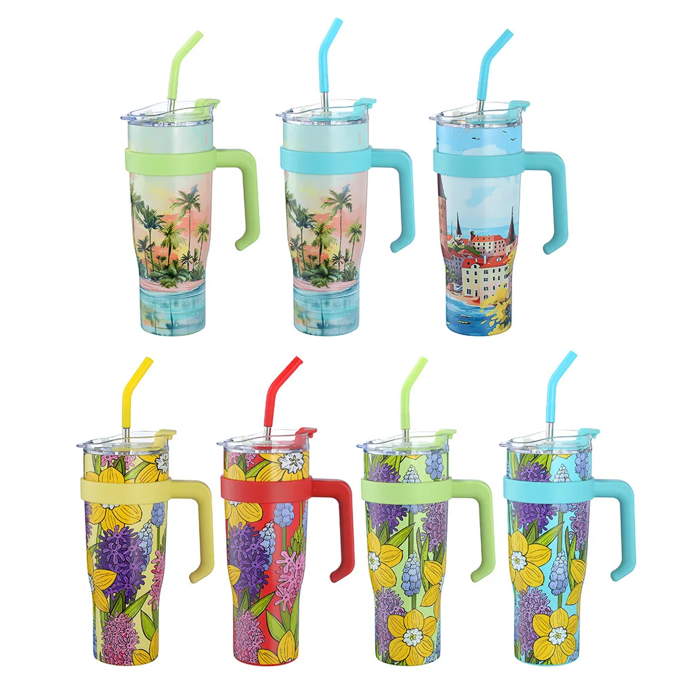 40 унций стакан с ручкой и соломенной крышкой кофейная Изолированная чашка многоразовая бутылка для воды из нержавеющей стали кружка путешествий