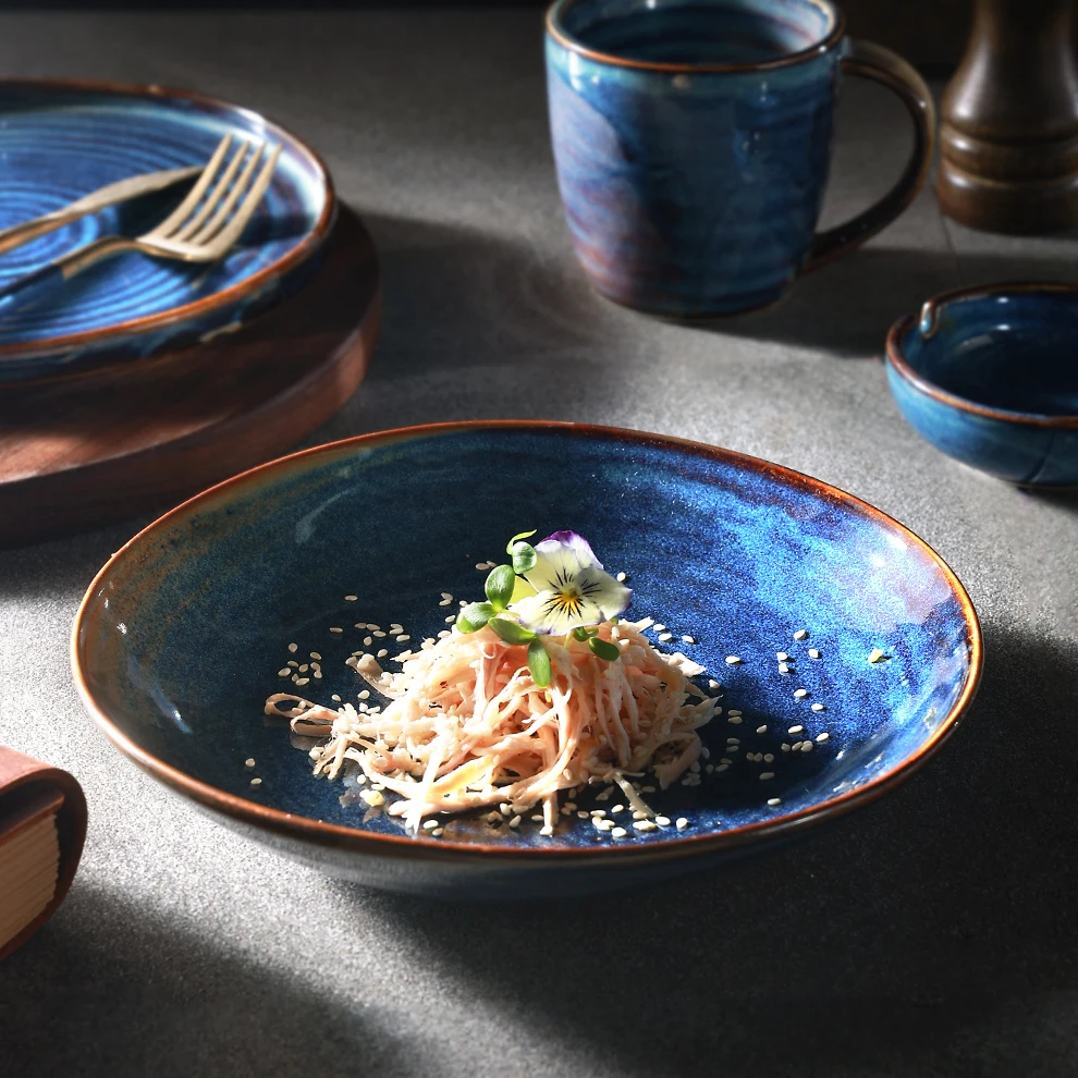 Керамическая тарелка для салата Современная посуда дома 8 дюймов глубоко-реактивный синий цвет круглые блюда и тарелки ресторана из скандинавского фарфора