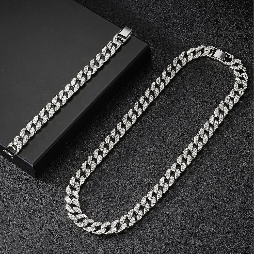 Мужская цепочка в стиле хип-хоп со стразами 15 мм