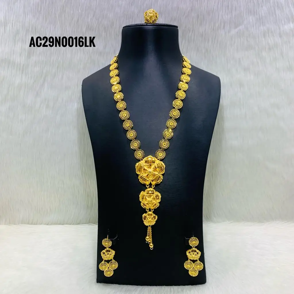 5 грамм с покрытыем цвета чистого 24 каратного золота исключительными правами на длинной цепочке ожерелье комплект серьги и кольцо палец для женщин хорошее ювелирное изделие дизайн