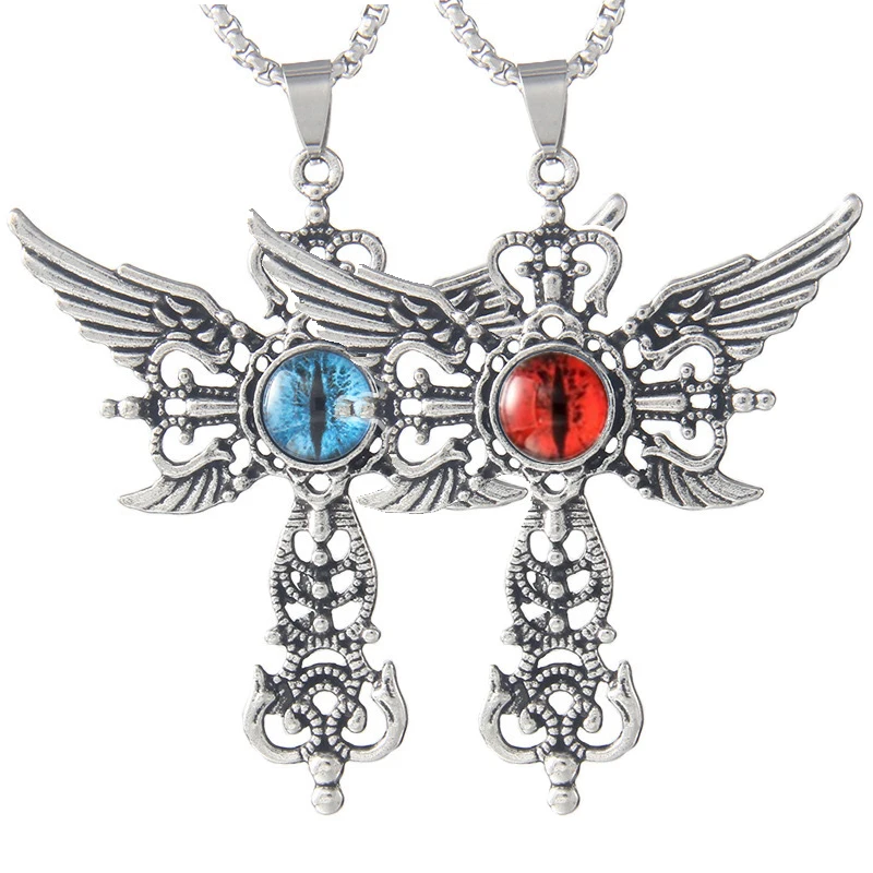 Оптовая Продажа Креативный дьявольский глаз демон крылья кулон крест мужское Ожерелье Ювелирные изделия Подарки 0,52-0,70 $