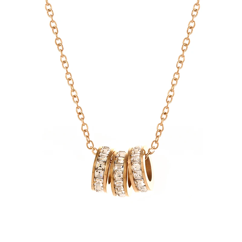 Модная обувь чувство не выцветающие набор циркония три кольца маленькие варвары пояс из нержавеющей стали ожерелье розового золота 1,10-1,35 $