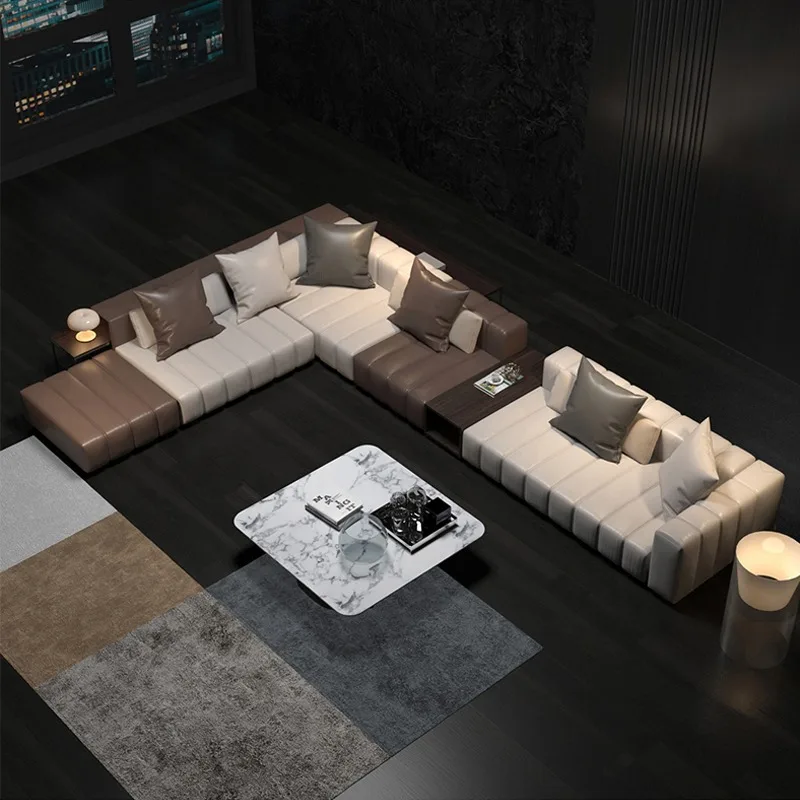 Итальянский современный минималистский кожаный диван большой размер гостиничная Гостиная высокого класса сочетание угловых ключей для пианино простой дизайн