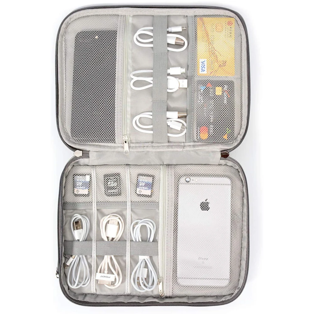 Индивидуальный логотип и текст дорожная цифровая сумка кабель зарядное устройство Органайзер классификация разделенные аксессуары для путешествий кожа