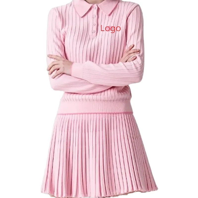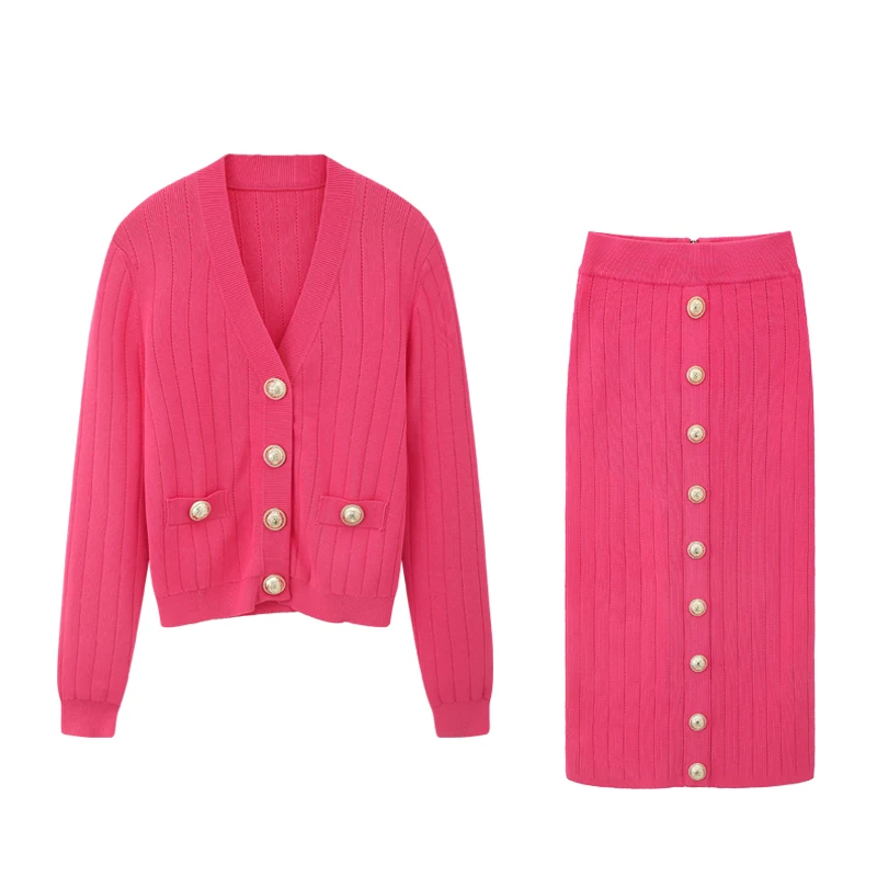 Однотонный Женский трикотажный кардиган на пуговицах юбка-свитер платье из двух частей