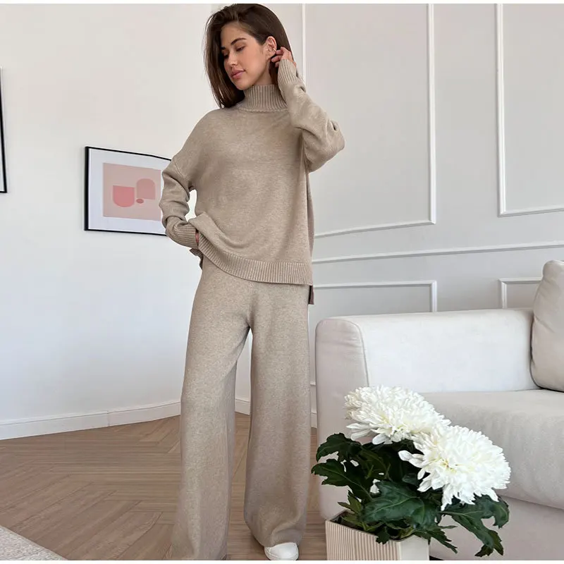 Осенне-зимний роскошный комплект из 2 предметов однотонный Повседневный вязаный женский шерстяной двух женские свитеры для женщин