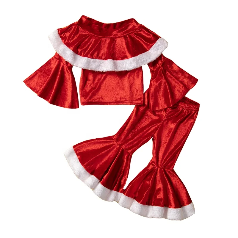 Новый Рождественский детский костюм для девочек Осенний бархатный топ на плечах расклешенные брюки модные комплекты из двух предметов 842,44 ₽ - 954,77 ₽