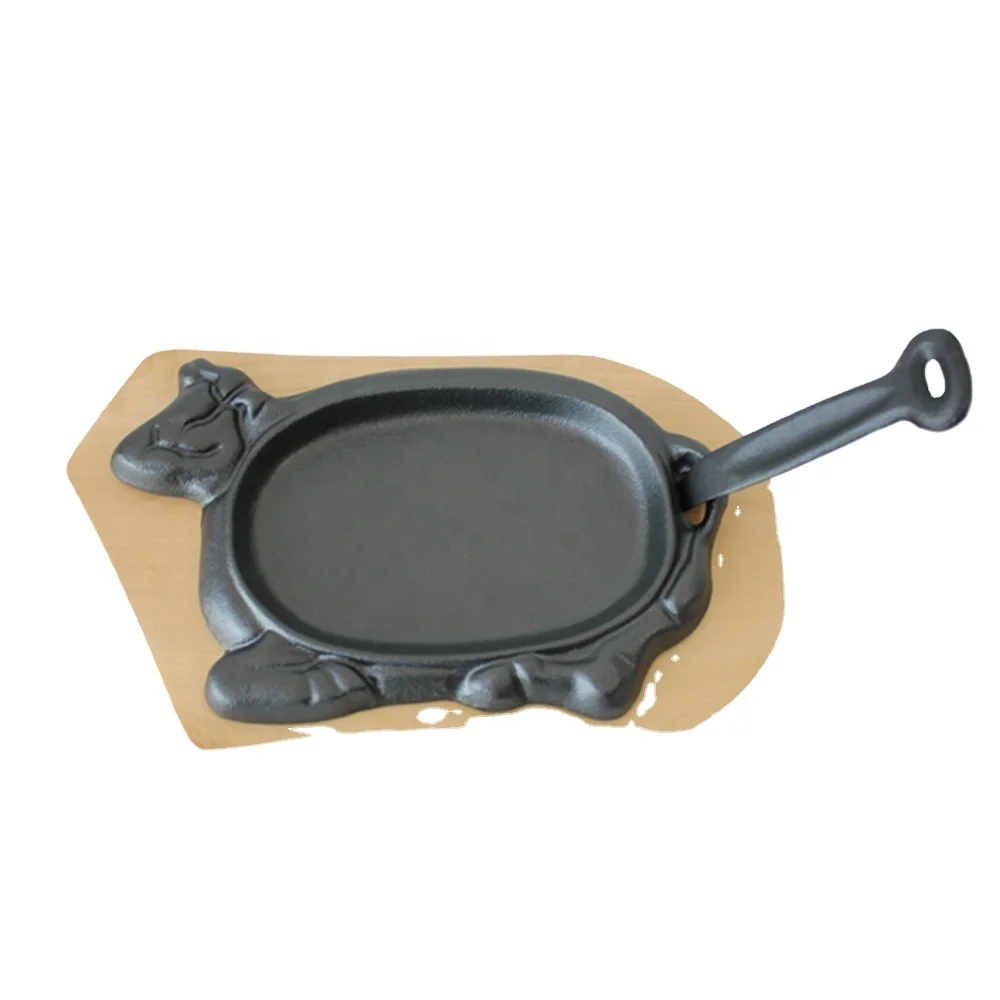 Предварительно обработанный чугунный гриль Sizzler в форме коровы с деревянным лотком 543,59-604,39 ₽