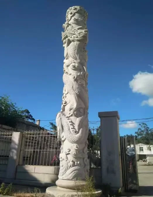Белый мрамор в натуральную величину Статуя китайского дракона садовая каменная скульптура фэншуй наружная резная большая статуя