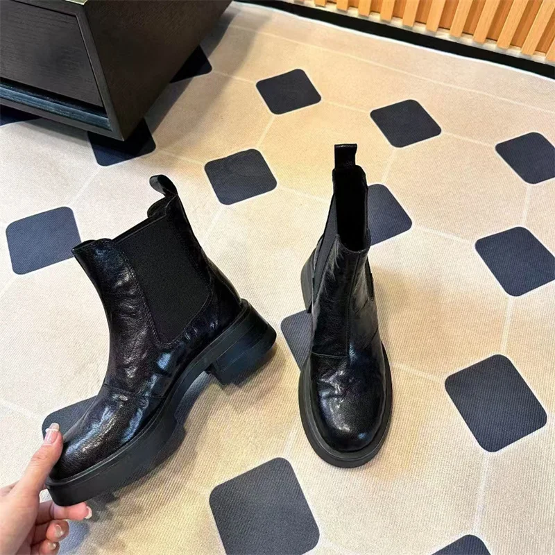Модные женские ботильоны со шнуровкой ботинки из лакированной кожи на платформе с застежкой-пряжкой 986,20 ₽ - 1 093,01 ₽