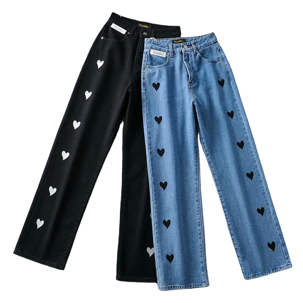 Прямые джинсы в стиле ретро с широкими штанинами черные и синие джинсовые брюки высокой талией милые женские стильные штаны вышивкой Love 1 661,46 ₽ - 1 967,65 ₽