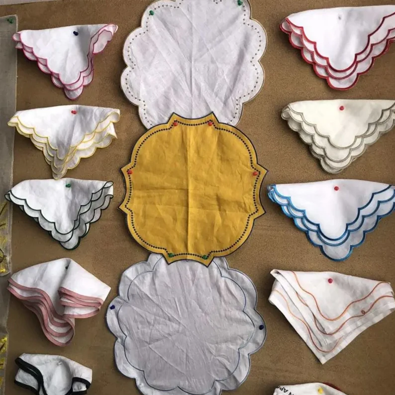 Набор 100% льняных салфеток и с волнистым краем