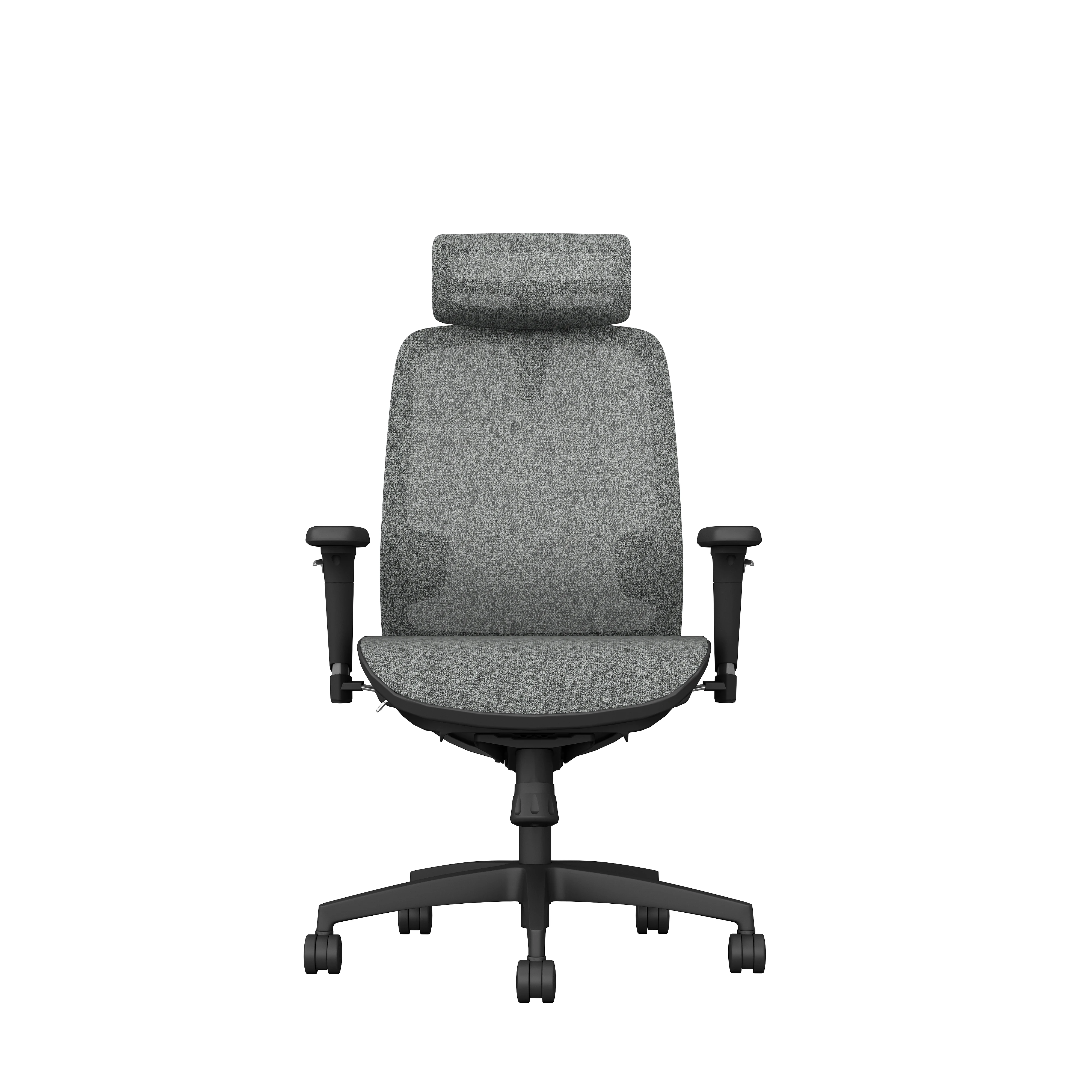 Light gray four legged chair frame fixed armrests light gray casters cushion and backrest cloth optional