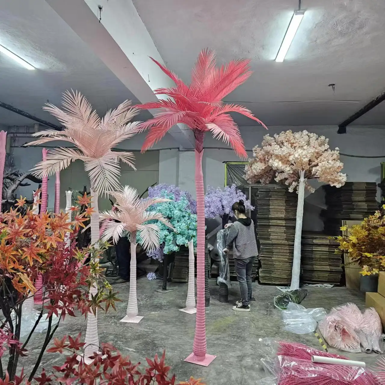 Оптовая продажа розовых искусственных пластиковых плэм-деревьев на заказ 2 м красочные искусственные кокосовые пальмы для дома уличный Декор распродажа